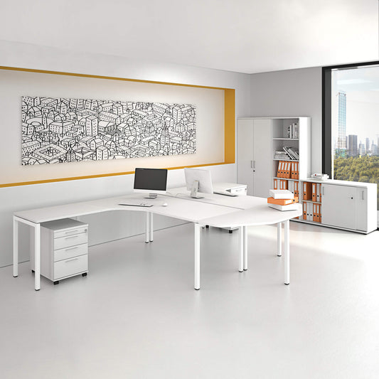 Verkaufspreis 2,529.00 CHFinkl. MwSt zzgl. MwStMOTION 2-Motoren-Schreibtisch mit SideboardElektrisch höhenverstellbar, 2000 x 1800 mm, Weißca. 8-10 Wochen -