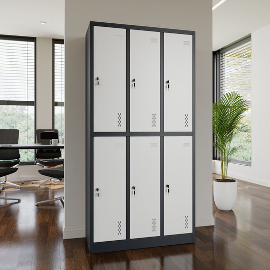 Mit einer Breite von 800 mm und einer Tiefe von 360 mm sind unsere Spinde äusserst platzsparend konzipiert. Sie nehmen daher nur wenig Platz ein und sind auch für kleinere Büros oder enge Flure hervorragend geeignet. Die Höhe variiert, je nachdem, ob du Spinde kaufst, die mit sechs oder acht Fächern ausgestattet sind. Diese Vielfalt in der Konfiguration erlaubt es, die Spinde optimal an die vorhandenen Platzverhältnisse und den individuellen Bedarf anzupassen. Ob in einem kleinen Start-up oder einem weitläufigen Open Space, unsere Spinde bieten eine effiziente und ästhetisch ansprechende Lösung zur Aufbewahrung persönlicher Gegenstände und Arbeitsmaterialien.