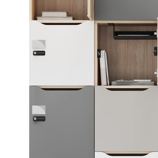- Förderung flexibler Arbeitsmodelle: Beim Desk Sharing oder in Co-Working Spaces ermöglicht ein persönlicher Spind den Mitarbeitenden, ihre Arbeitsmaterialien und persönlichen Dinge sicher zu verstauen, wenn sie nicht am Schreibtisch sind oder an verschiedenen Arbeitsplätzen tätig sind.