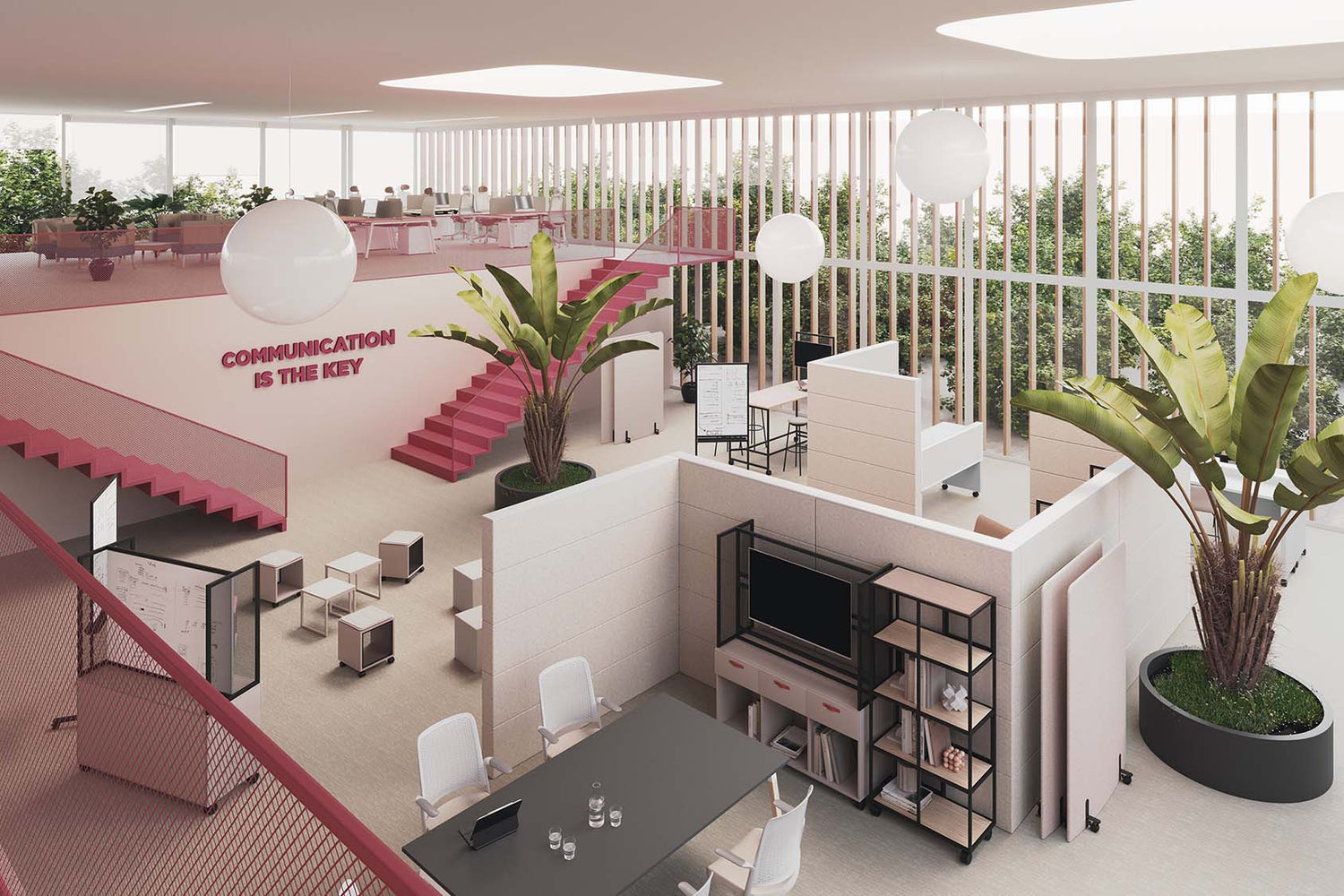 When did you last hold a meeting with several people in a conference room? In the age of digitization, many meetings take place directly at the workplace by video call. This requires optimal conditions. Well thought -out solutions such as darkening options, multifunctional office furniture and spatial separations expand the palette of classic meeting rooms - et voilà, a meeting area in the middle of your open space office!
