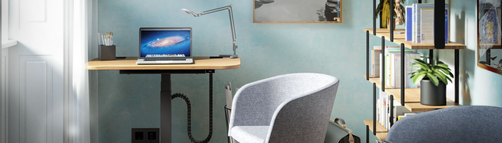 Even in a small office, the ergonomics must not be neglected. Ensure enough light in the workplace, especially if your desk is in a darker corner. Writing lamps with adjustable arm, which can be mounted on the wall or clamped on the table top, are a good solution here. Make sure that your PC screen is aligned at a 90-degree angle to the window to avoid reflections and protect your eyes. And even if the space is limited, try to keep the work surface as large as possible so that you can work relaxed. Also invest in one ergonomic office chair Or a space -saving stool to prevent back pain.