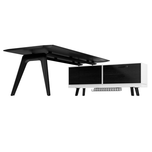 selling price From 2,249.00 CHFincluding VAT plus VATBRALCO SILE desk with lowboard2300 x 1700mm, Blackapproximately 4-5 weeks -