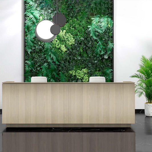Selling price From 1,819.00 CHFVAT included plus VATICE reception desk3214 x 1022 mm, gray northern oakapprox. 6-8 weeks -