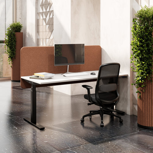 The elegant T-foot frame ensures stability. You can choose between white, black, anthracite, and silver for the frame. With some frame variants, you can opt for side panels. There is space for a container under the tabletop. Whether in an open-plan office, a private office, or for your home office: with a height-adjustable desk that is not only practical but also looks good, your working life will take on a whole new quality!