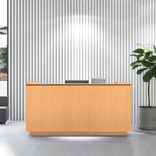 Selling price From 1,589.00 CHFVAT included plus VATICE reception desk3214 x 1022 mm, amber oakapprox. 8-10 weeks -