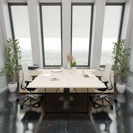 Normal price From 1,279.00 CHFNormal priceUnit price / PerVAT included plus VATAIR DUO team desk with sideboards1600 - 2000 x 3200 mm, electrified, sand ashapprox. 6-8 weeks