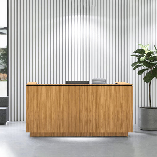 Selling price From 1,309.00 CHFVAT included plus VATICE reception desk2204 x 1022 mm, amber oakapprox. 6-8 weeks -