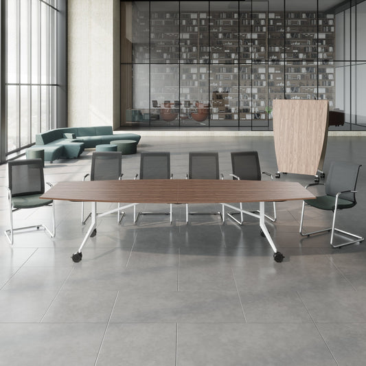Boat shape, 3200 x 1200 mm (10 - 14 people), rollable, foldable, real wood veneer walnut