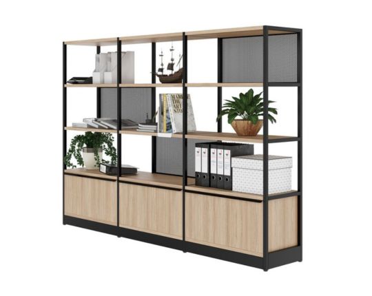 This is quality that convinces: the body and back wall consists of 18 mm thick MFC panels with melamine resin coating-stable, resistant and durable. Thanks to the decorative surface on both sides, the cabinet can not only be placed on the wall, but also ideally used as a room separator in open office concepts.