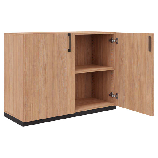 Coated with Melamine resin In amber oak, your wing door cabinet is still protected from lighting, water and scratches after years. And so that even firmer bumps do not harm both the cabinet or their hands, we protect all edges with us elastic ABS mimers.
