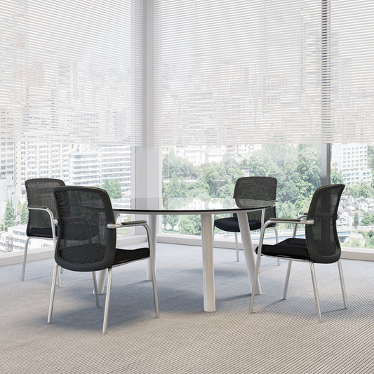 Mesh back, armrests, stackable, black