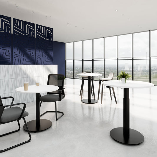 With its 1 meter diameter, the table offers you Sufficient space for up to 4 people. With the modern meeting table from the series OPTIMA you can realize your meetings stylishly. It fits every interior design - but does anything but inconspicuous.
