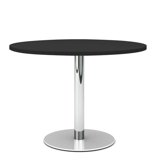 Discover the shapely meeting table from the series OPTIMA. It impresses with its highest quality workmanship from the professional office furniture area and is equipped with a massive steel foot. The mass of the table: diameter 1000 mm and height 740 mm. The Color: A table top in anthracite, combined with a powder-coated steel frame in anthracite, rounds off the elegant design.