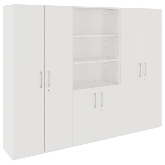 Say bye to fly around and scattered office materials - with the cabinet wall from our upper class closet series PRO bring Order in the office. Ideal for everyone who cannot choose between the closed file cabinet and the open shelf, because here you get both!