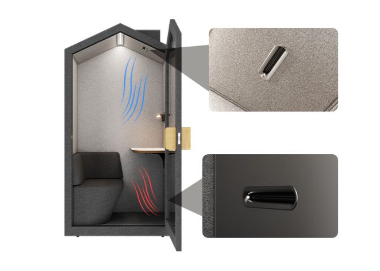 Whether as a home office, as a retreat for meetings in the office or a cozy reading corner-the Quiet House S acoustic cabin is a versatile and stylish acoustic solution for one person. With spacious interior masses of 1.00 m wide and 1.96 m high, you have enough space for productive work or relaxing breaks.