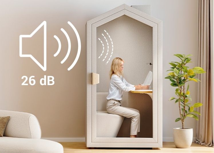 In the office, it often goes haywire? The small acoustic cabin for one person offers a quiet retreat thanks to acoustic panels. With sound insulation of up to 26 dB according to ISO 717-1: 2020 and excellent speech intelligibility (STI A+), you create a space in which interruptions have no chance. The cabin also makes itself ideal in the home office when the children rage in the background.