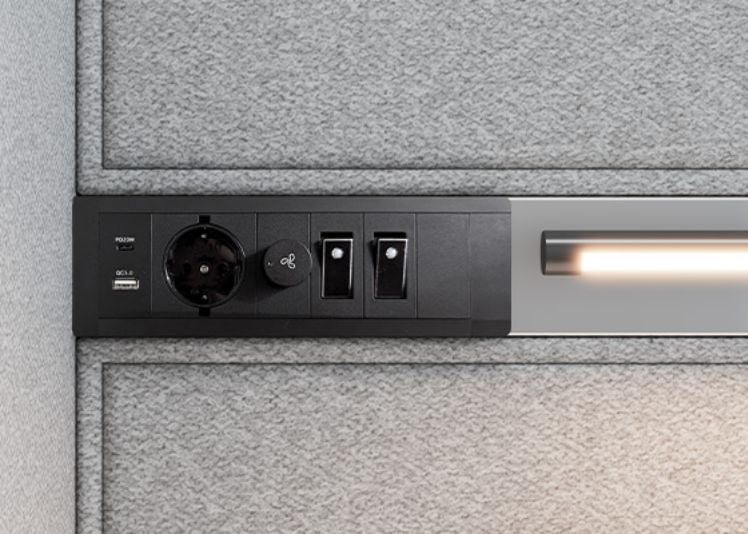 The Quiet House S is not only soundproof, but also smart. The integrated movement sensor saves valuable energy: As soon as no movement is recognized for five minutes, the system switches off automatically. The infrared sensor registers every activity and ensures that lighting and ventilation are only active if you really need it.