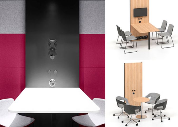 Design your SILENT ROOM exactly the way you want it: In addition to the models from , WeberBÜRO you can create your own individual design from the three fabric groups VELITO, SYNERGY, and BERTA with a total of 49 colors and 5 melamine coatings. Both the walls and the chairs can be customized to your liking.