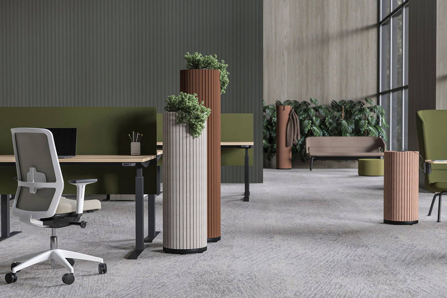 Une autre façon d'améliorer l'acoustique dans le bureau est les diviseurs de salle spéciaux ou les partitions qui absorbent le son. Ceux-ci peuvent être utilisés de manière flexible pour séparer les zones bruyantes des zones calmes.