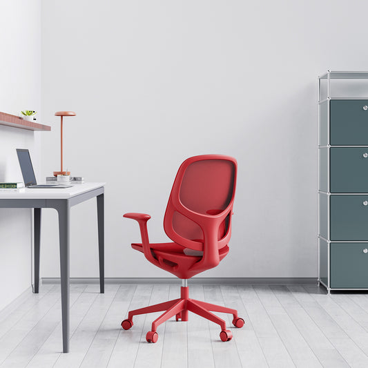 199.00 CHFprix de vente 129.00 CHFTVA comprise hors TVAChaise de bureau BREATHEAccoudoirs fixes, piètement à 5 branches, rougeenviron 5 à 10 jours ouvrables -