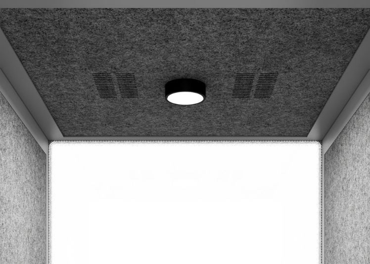 Le contrôle intelligent de la cabine acoustique offre plus de confort et d'efficacité énergétique. Si vous entrez dans la cabine, le capteur de mouvement active automatiquement la lumière et la ventilation. Si vous quittez la boîte, les deux systèmes s'éteignent après cinq minutes - sans aucun effort supplémentaire. Tout simplement intelligent et respectueux de l'environnement.