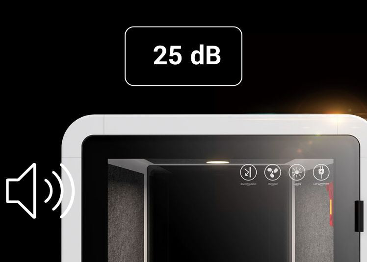 Le bruit au bureau rend le travail concentré difficile. La cabine téléphonique VR-S crée une retraite silencieuse pour des conversations non perturbées ou des pauses créatives. Les panneaux muraux en fibre de carbone en grattage, le verre de sécurité durci et un cadre en aluminium en qualité de l'aviation réduisent les bruits jusqu'à 25 dB. Les pieds damponnants de vibration empêchent les ponts acoustiques et optimisent l'isolation sonore.