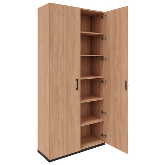 Recouvert de Résine mélamine Dans Amber Oak, votre armoire de porte d'aile est toujours protégée contre l'éclairage, l'eau et les rayures après des années. Et pour que même des bosses plus fermes ne nuisent pas à la fois à l'armoire ou à leurs mains, nous protégeons tous les bords avec nous Mimers ABS élastiques.
