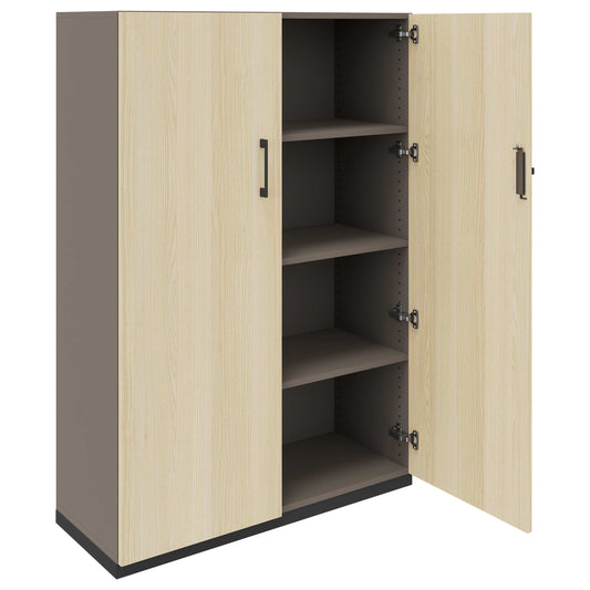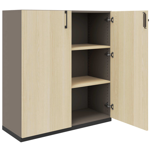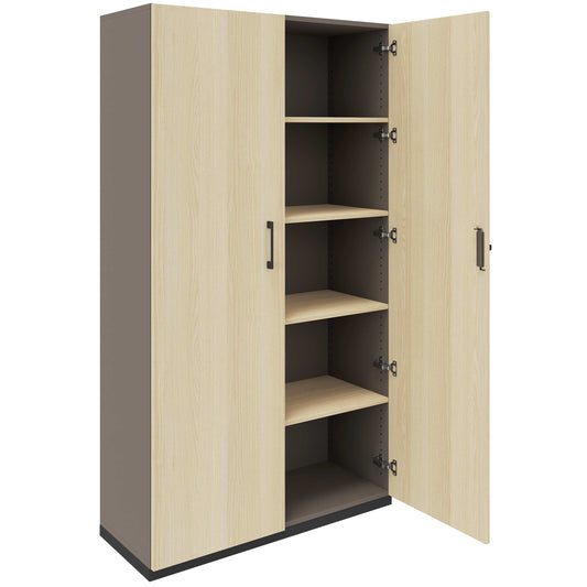 C'est une qualité qui convainc: le corps et la paroi arrière se compose de panneaux MFC de 18 mm d'épaisseur avec revêtement en résine de mélamine, résistant et durable. Grâce à la surface décorative des deux côtés, l'armoire peut non seulement être placée sur le mur, mais également idéalement utilisée comme séparateur de salle dans les concepts de bureau ouvert.
