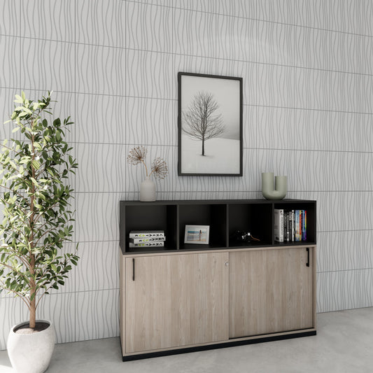 Entdecke das hochwertige Schrankset unserer beliebten CHOICE Serie. Es besteht aus 2 Flügeltürenschränken, 1 offenem Regal und 1 Abdeckplatte und bietet dir flexiblen Stauraum mit zusätzlicher Ablagefläche.