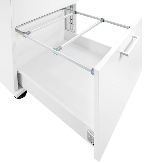Le Verrouillage de fouille intégré Empêche plusieurs tiroirs d'être ouverts en même temps. Grâce aux quatre rôles sur le dessous du conteneur, vous pouvez pousser librement les meubles de stockage utiles à travers la pièce avec peu d'effort.