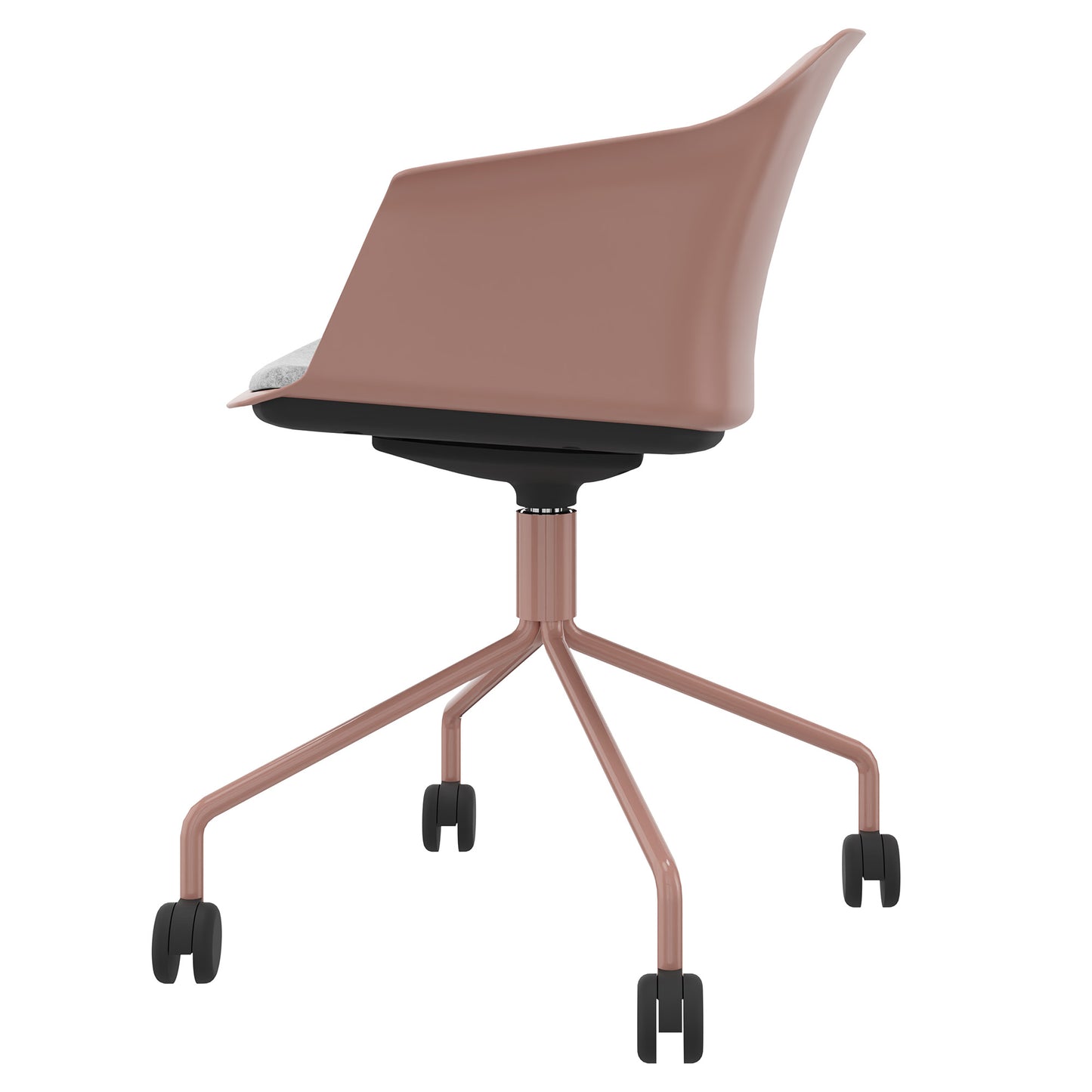 Le siège parfaitement en forme et le dossier sont en plastique PP de haute qualité (polypropylène). Le cadre pyramide à 4 rouleaux enduit en poudre est élégant et sert à une mobilité sûre à travers les bureaux et au bureau à domicile. Dans la variante avec le coussin de siège super doux, ce n'est pas non plus un problème s'il prend quelques heures de plus - au contraire.
