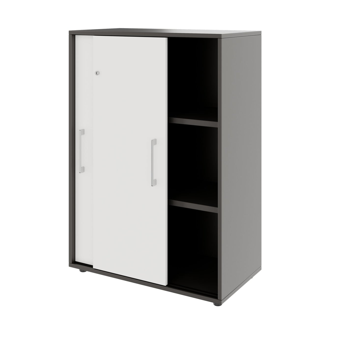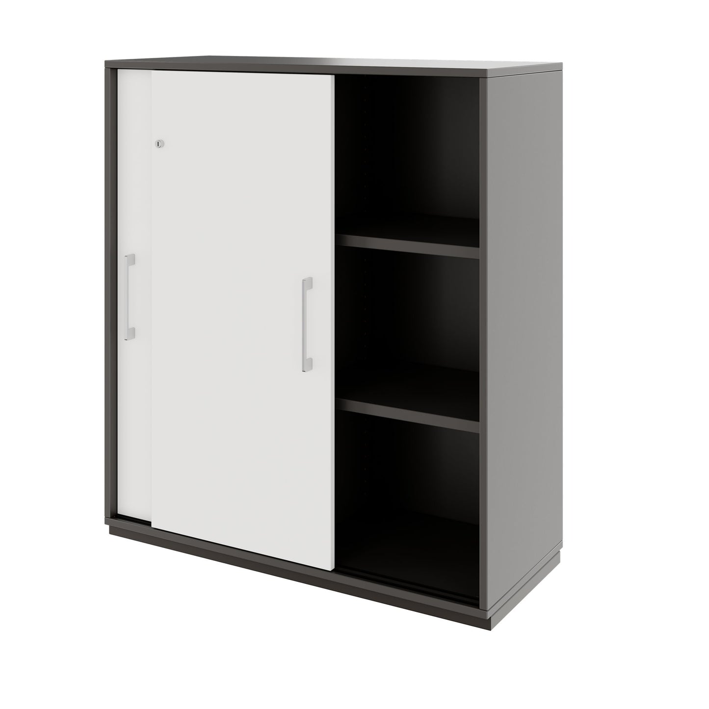 Pour les bureaux qui attendent plus: le PRO Série Cabinet Combine des matériaux de haute qualité, des concepts d'espace de stockage flexibles et des détails de réflexion. Que ce soit avec des portes d'aile, des portes coulissantes ou un volet à rouleaux croisés - chaque placard est un investissement dans la durabilité et le confort. Découvrez les portes coulissantes de notre série d'armoires de classe supérieure.