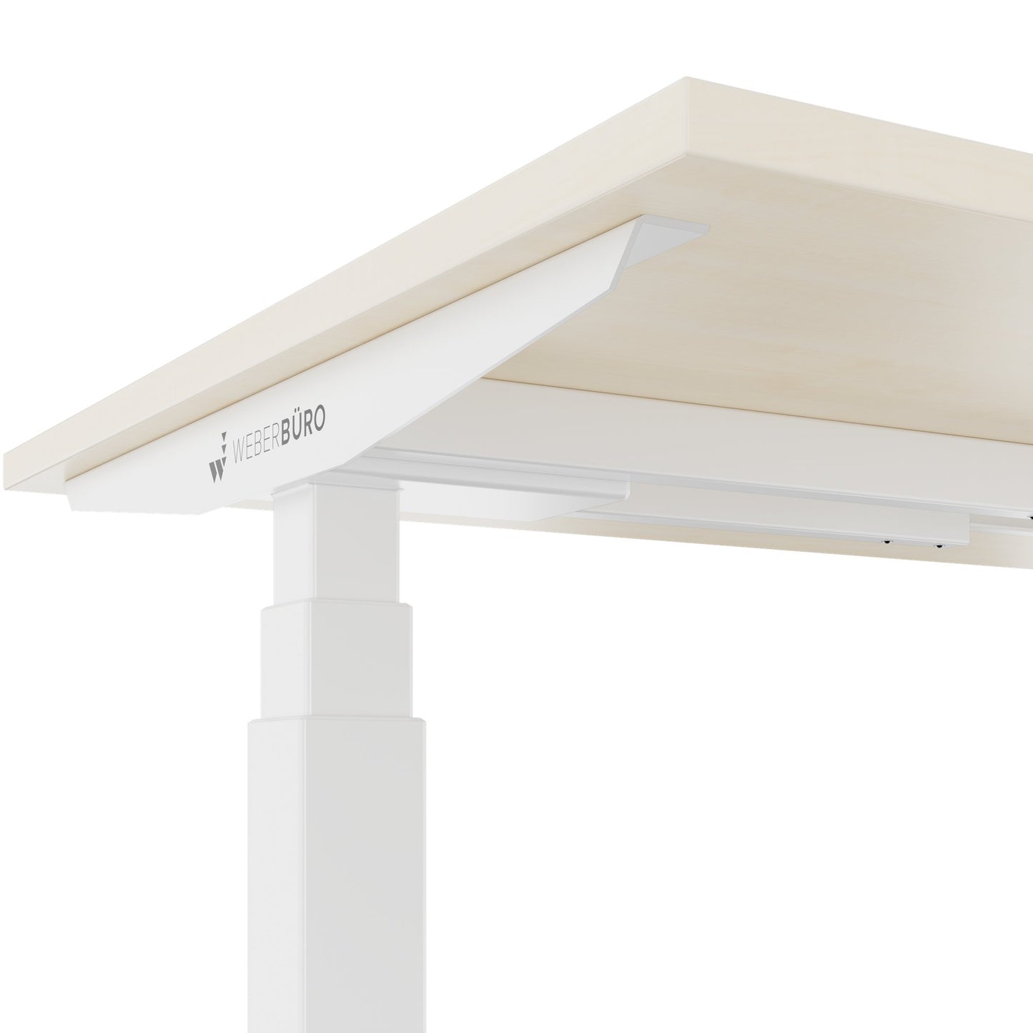 Équipement des bureaux 2 ports USB-C | Protection de l'enfance | Capteur anti-collision | Soft Start-Stop | Consommation d'énergie en veille <0,1w | Capacité de charge jusqu'à 200 kg | Vitesse constante jusqu'à 40 mm \/ s | Kit pré-assemblé pour une structure rapide en moins de 5 minutes | WeberBÜRO-Logo