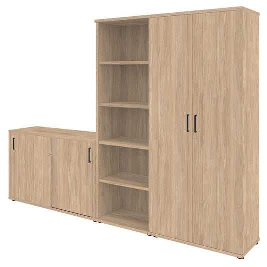 L'armoire combinée de haute qualité à Amber Oak de la série UNI Combine 2 tiroirs pour A4 Hang-Habit avec une étagère ouverte. Ce cabinet bien pensé et élégant vous aide à garder votre bureau correctement!