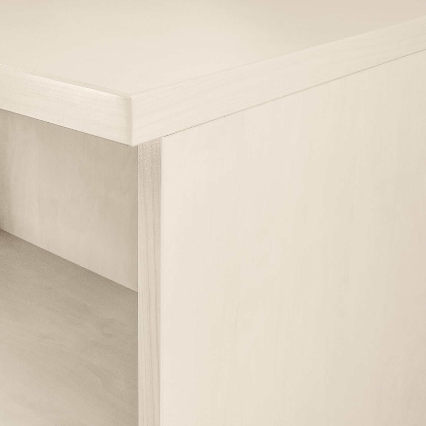Toutes les parties en bois sont enduites de résine mélamine des deux côtés, ce qui assure une surface particulièrement dure et résistante. Cette protection est complétée par l'arpenteur ABS de 2 mm de haut, qui préserve de manière fiable les bords du meuble des poussées et de l'usure. La combinaison d'un revêtement robuste et de bords renforcés assure une longue durée de vie et un look sans faille - même avec un stress quotidien.