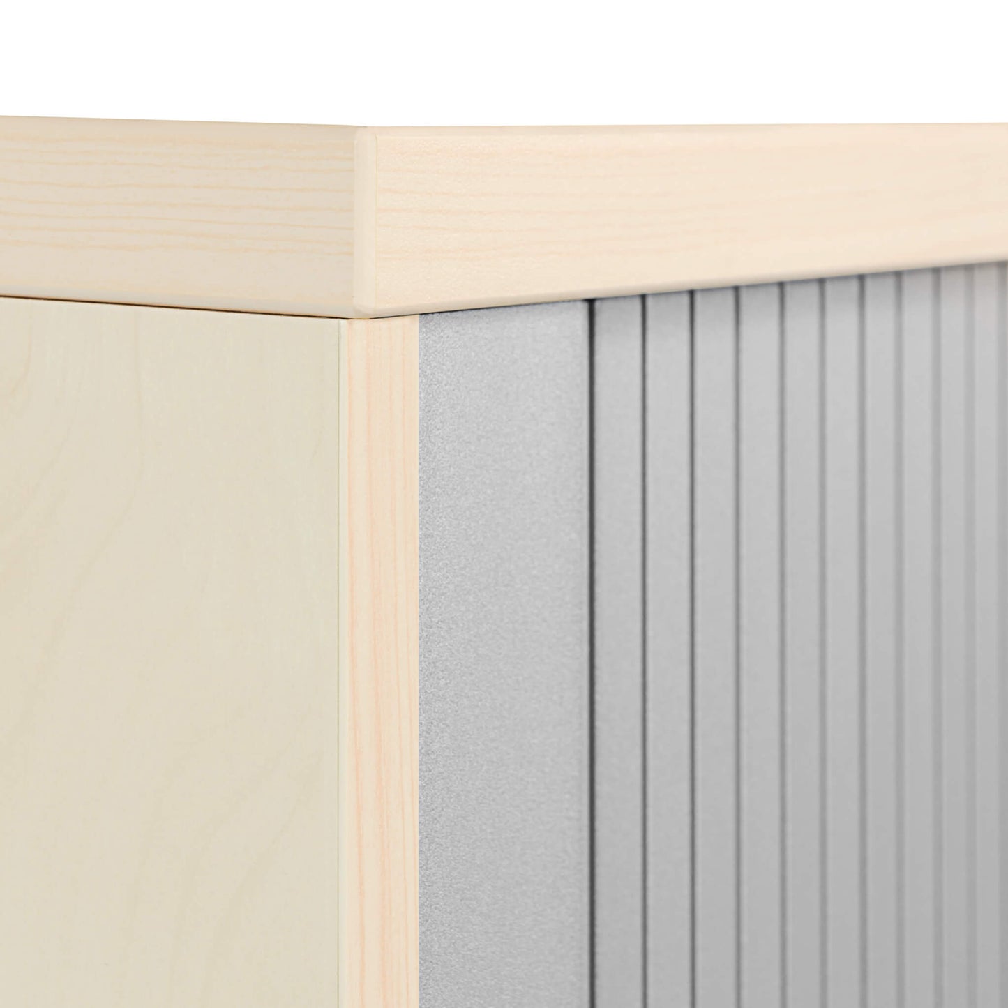 La charge de rouleaux transversales glisse sur des rails en plastique et peut être ouverte et fermée en douceur et tranquillement - même dans le cas d'un espace plus proche. Pour cette raison, ce buffet est recommandé comme une solution particulièrement économe en pièce.