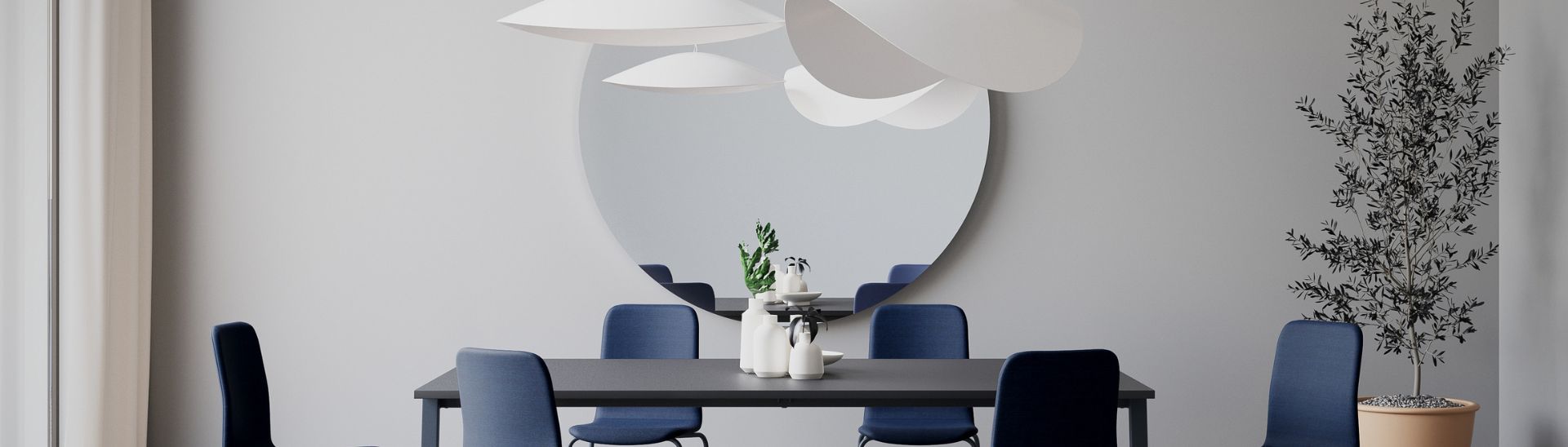 Le luci a sospensione pendono dal soffitto e possono essere posizionate su determinate aree come la riunione dei tavoli o le isole di lavoro per offrire un'illuminazione mirata. Sono ideali per impostare accenti o creare un certo umore nella stanza senza influire sulla vista degli schermi.