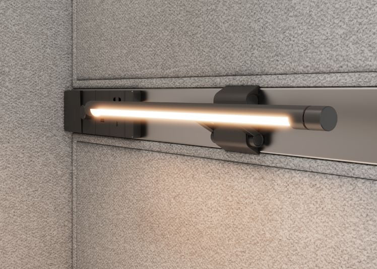 Il sistema di illuminazione naturale della cabina garantisce condizioni di lavoro ideali, non importa il tempo. Con l'illuminazione a LED regolabile (4000 K) hai sempre la luce perfetta per il lavoro concentrato o la lettura rilassata. La lampada di lettura integrata si adatta al tuo umore regolando la luminosità e la temperatura del colore come richiesto.