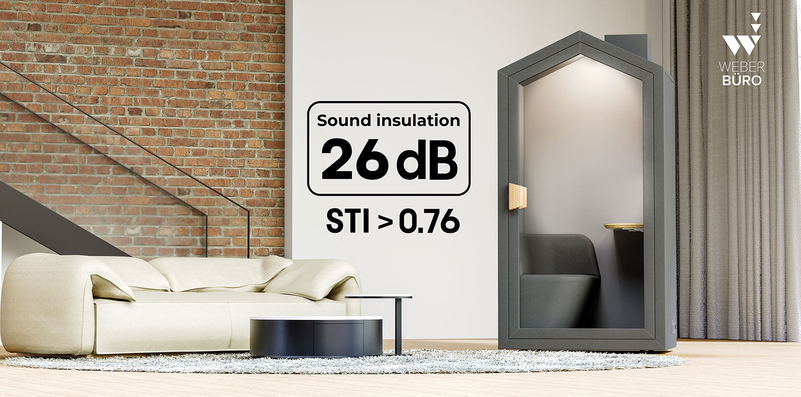 In ufficio, spesso va in tilt? La piccola cabina acustica per una persona offre un ritiro silenzioso grazie ai pannelli acustici. Con un solido isolamento fino a 26 dB secondo ISO 717-1: 2020 e un'eccellente intelligibilità del linguaggio (STI A+), si crea uno spazio in cui le interruzioni non hanno alcuna possibilità. La cabina si rende anche ideale nel Ministero degli Interni quando i bambini imperversano in background.