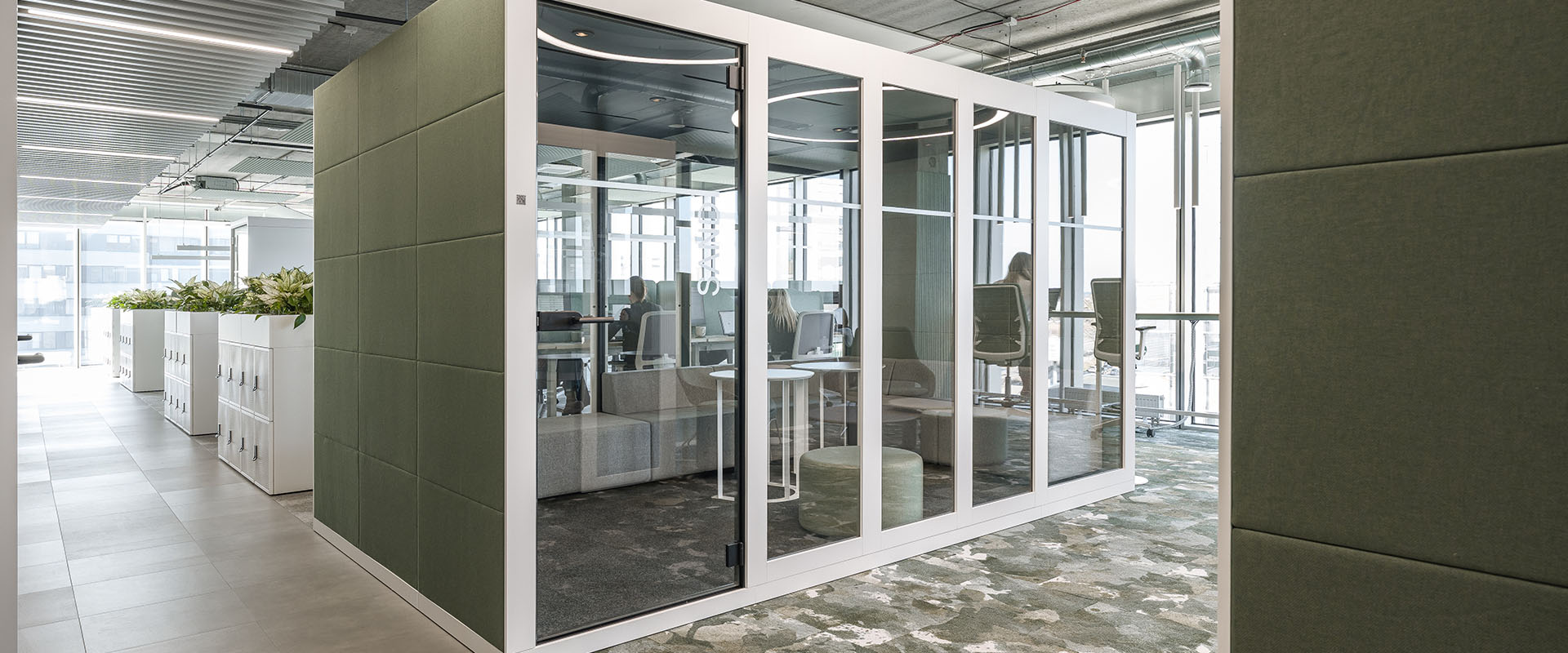 Raum-in-Raum-Systeme bieten flexible Lösungen, um Büroflächen dynamisch zu gestalten. Diese Systeme ermöglichen es, mobile und modulare Einheiten zur Verfügung zu stellen, die leicht auf- und abgebaut werden können. Sie helfen, den Geräuschpegel zu reduzieren und die Konzentration und Kommunikation der Mitarbeiter zu fördern.