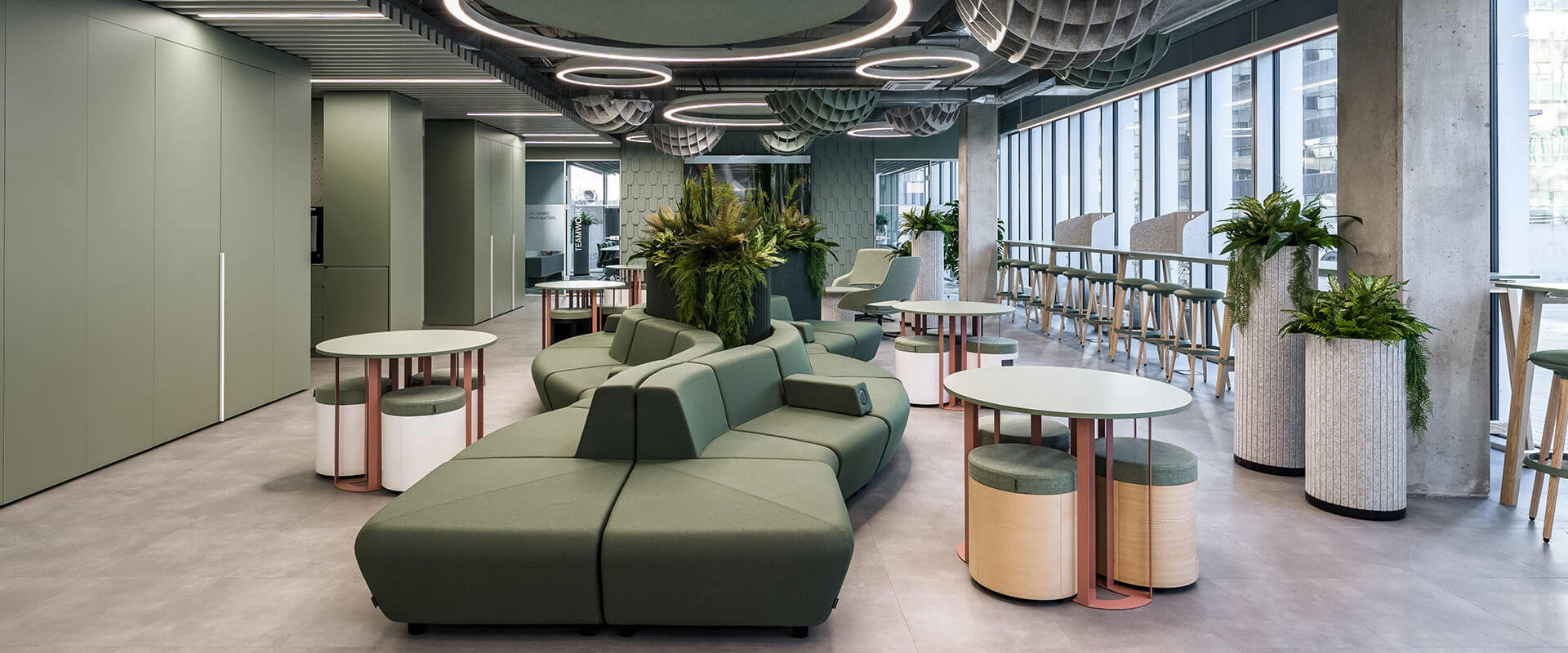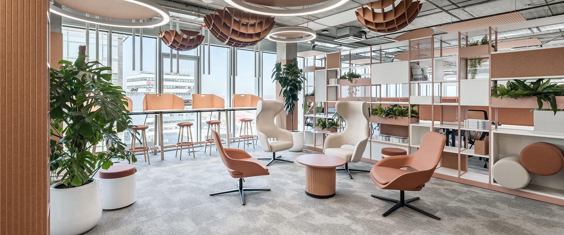 Pausenzonen sollten ein angenehmes Umfeld bieten, in dem Mitarbeiter neue Energie sammeln können. Wir gestalten mehr als nur funktionale Pausenräume und schaffen Bereiche für Kommunikation und Entspannung. Dabei sind Möblierung, Farbgebung, Beleuchtung und die Einbeziehung von Pflanzen entscheidend.