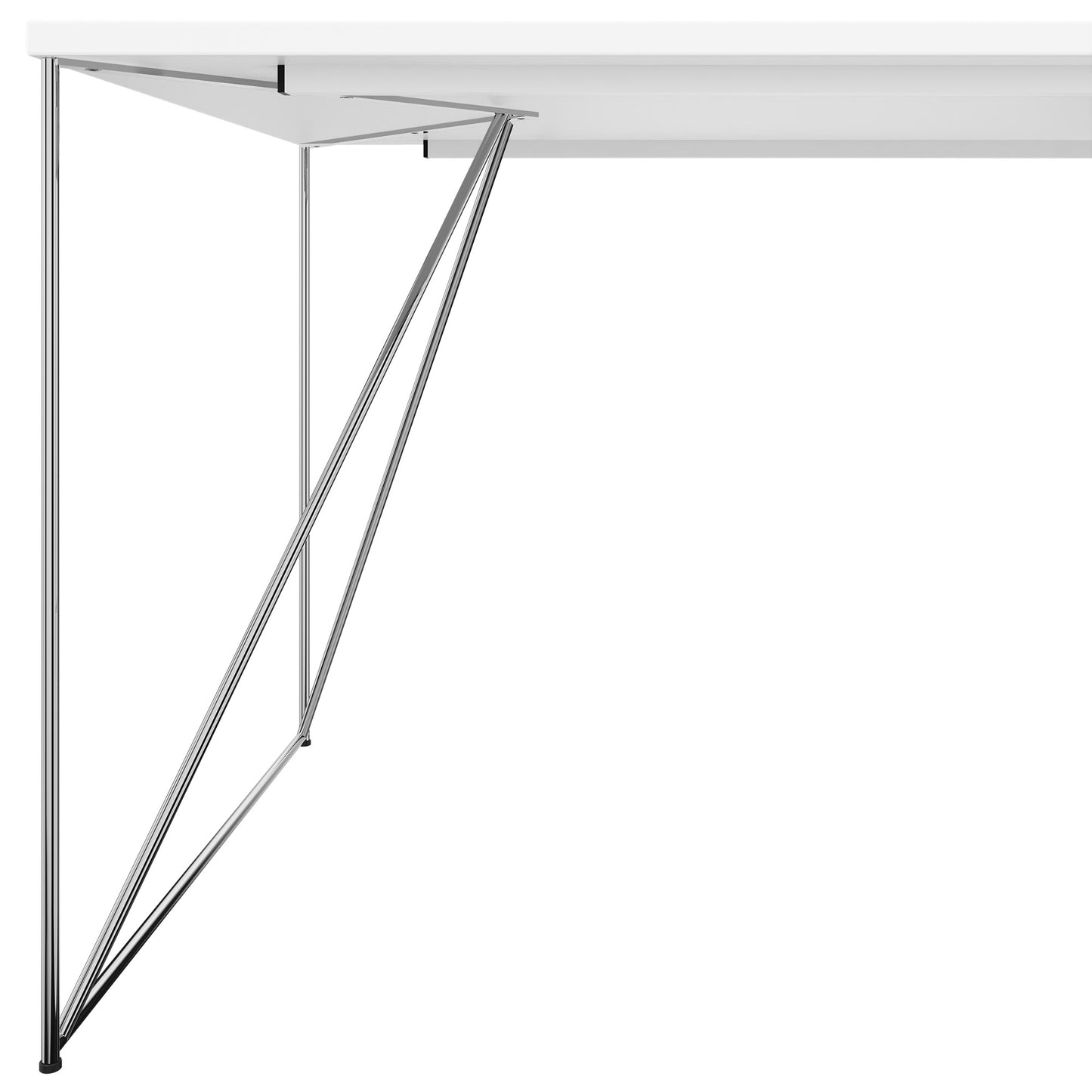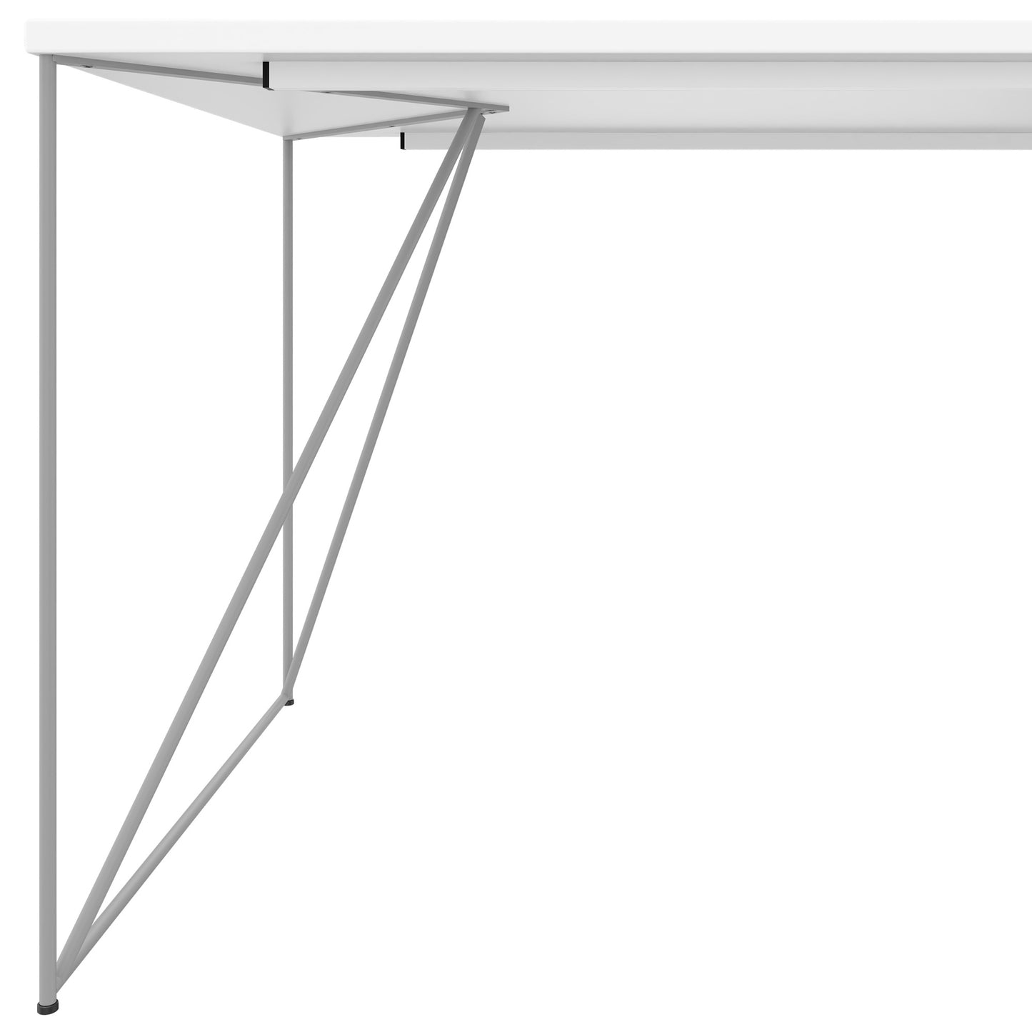 Der Schreibtisch AIR verbindet Design, Leichtigkeit und Funktionalität mit hochwertiger Verarbeitung aus dem Profi-Büromöbelbereich. Die zarten Tischbeine sind aus hochwertigem und pulverbeschichtetem Metall und verleihen dem Tisch eine hohe Stabilität. Die Beine werden mit einer 25 Millimeter starken Schreibtischplatte kombiniert, welche beidseitig mit Melaminharz beschichtet wurde. Dank der 2 Millimeter starken ABS Umleimerkante beweist sich diese als äußerst kratz- und stoßfest.