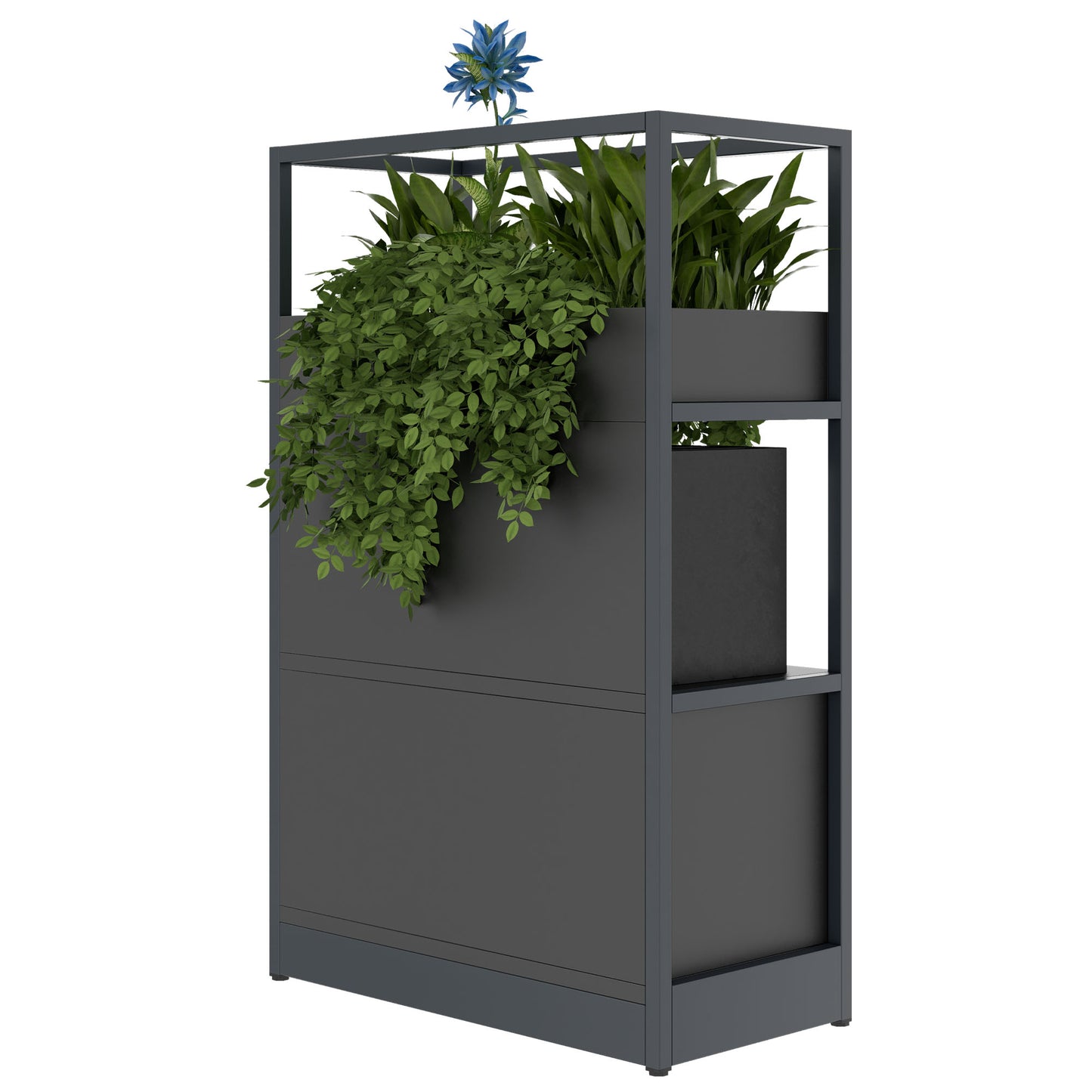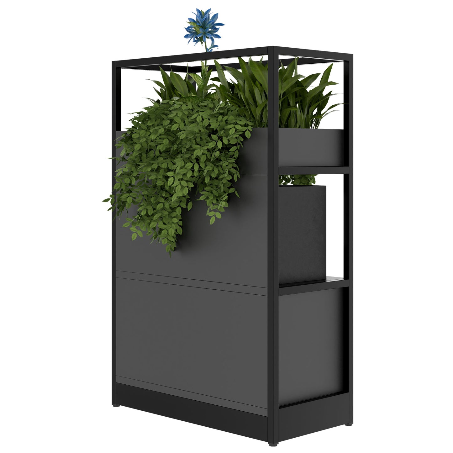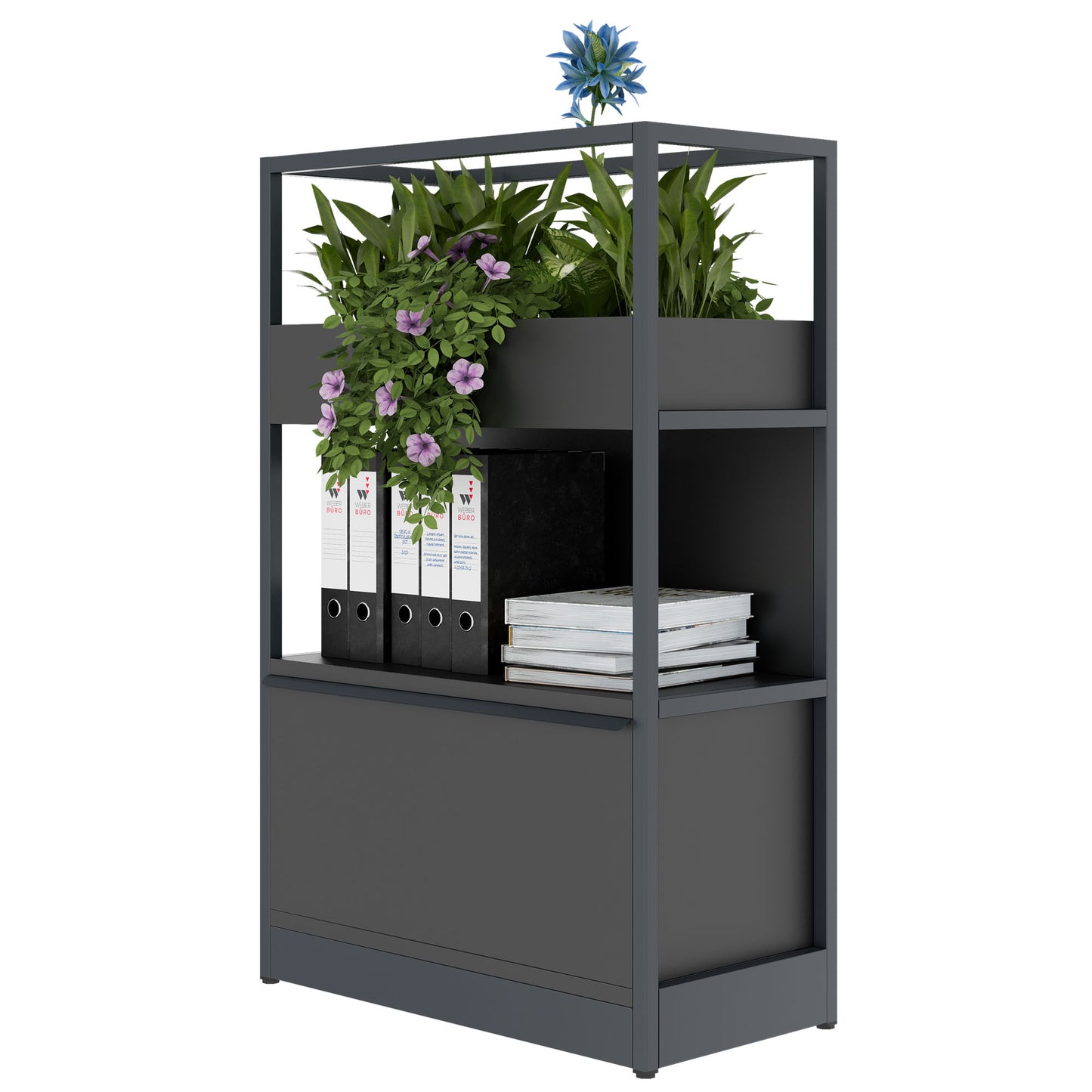 - **Zubehör nach Maß**: Von Blumenkästen über Buchstützen bis hin zu Bildschirmbefestigungen. Mach das ATELLA zu deinem persönlichen Raumteiler oder zur beeindruckenden Konferenzwand, ganz wie es dir gefällt.