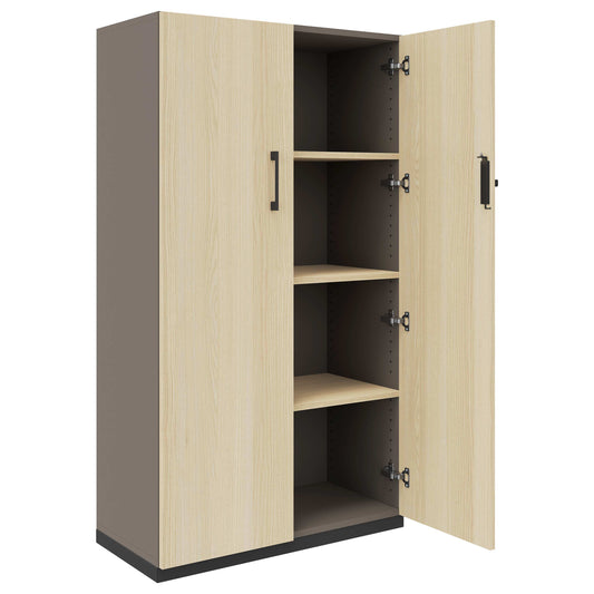 Entdecke den Profi-Flügeltürenschrank mit Top-Ausstattung, der durch seinen Stahlsockel, ABS-Kanten und eine robuste Melaminharzbeschichtung besticht. Freue dich auf eine langjährige Nutzung, unterstützt durch 10 Jahre Garantie. Die Masse von 800 x 420 x 1115 Millimeter bieten ausreichend Platz für deine Bedürfnisse. Erhältlich in der modernen Farbkombination Sandesche und Cubanitgrau, fügt er sich nahtlos in jede Umgebung ein. Dazu kommt ein Lehmann-Markenschloss und eine Softclose-Mechanik für zusätzlichen Komfort und Sicherheit.