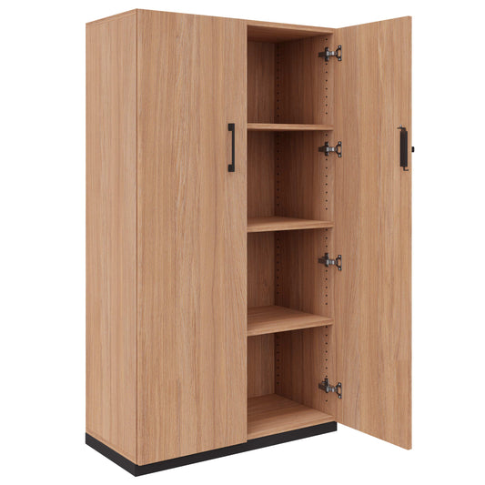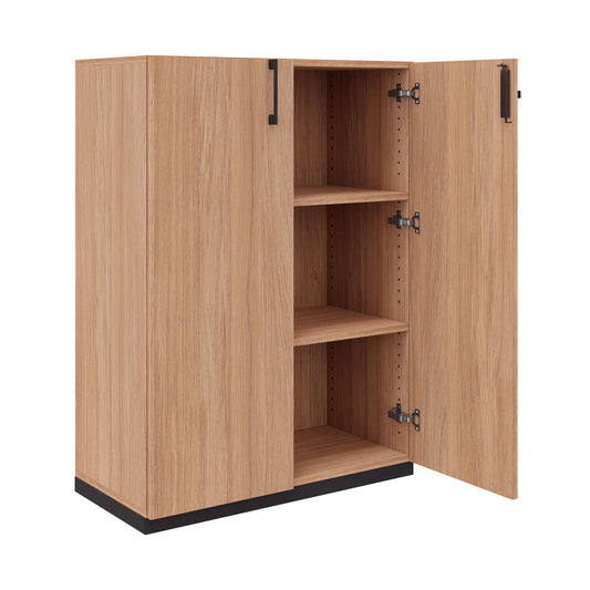 Das ist Qualität, die überzeugt: Der Korpus samt Rückwand besteht aus 18 mm starken MFC-Platten mit Melaminharzbeschichtung – stabil, widerstandsfähig und langlebig. Dank der beidseitigen Dekoroberfläche lässt sich der Schrank nicht nur an der Wand platzieren, sondern auch ideal als Raumtrenner in offenen Bürokonzepten nutzen.