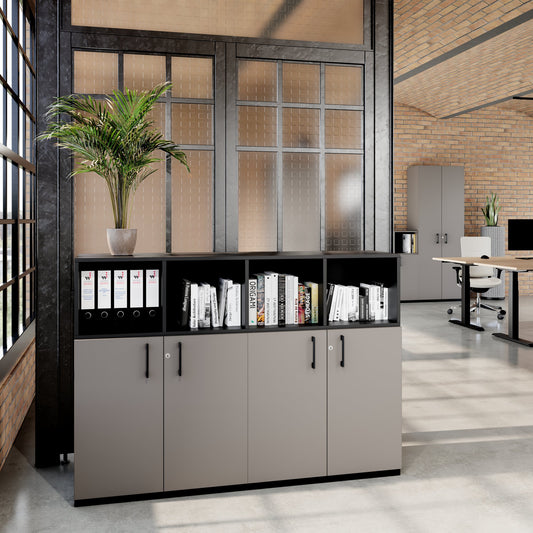 - Für den harten Büroalltag gemacht: Das CHOICE Schrankset kombiniert Robustheit mit zeitlosem Design. Kratzer? Fehlanzeige dank Oberfläche mit Melaminharzbeschichtung. Licht und Wasser? Können Ihrem Schrank nichts anhaben. Die Kanten sind außerdem mit ABS verstärkt, was ihnen eine hohe Schlagfestigkeit verleiht und zusätzlichen Schutz vor Stößen bietet. Das Beste: Die 18 mm dicken Fachböden tragen mühelos bis zu 20 kg. Da wackelt nichts, egal wie voll die Schränke sind.