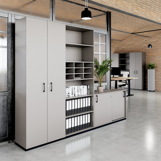 Erlebe das hochwertige Schrankset unserer beliebten CHOICE Serie. Es besteht aus zwei Flügeltürenschränken und einem Aufsatzregal. Dieses Set bietet dir optimalen Stauraum mit offener und geschlossener Ablagefläche.