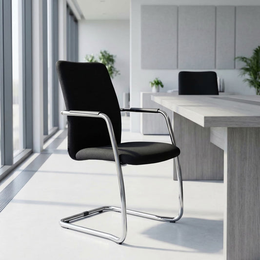 Prestige und Komfort - genau das ist die Definition für unseren Freischwinger aus der Serie GAMA. Dieser Stuhl bietet eine hohe Stabilität und harmoniert mit seinem Design mit vielen Büromöbel-Einrichtungen. Er besitzt ein herausragendes Preis-Leistungsverhältnis und ist nicht zufällig einer unserer meistverkauften Freischwinger.