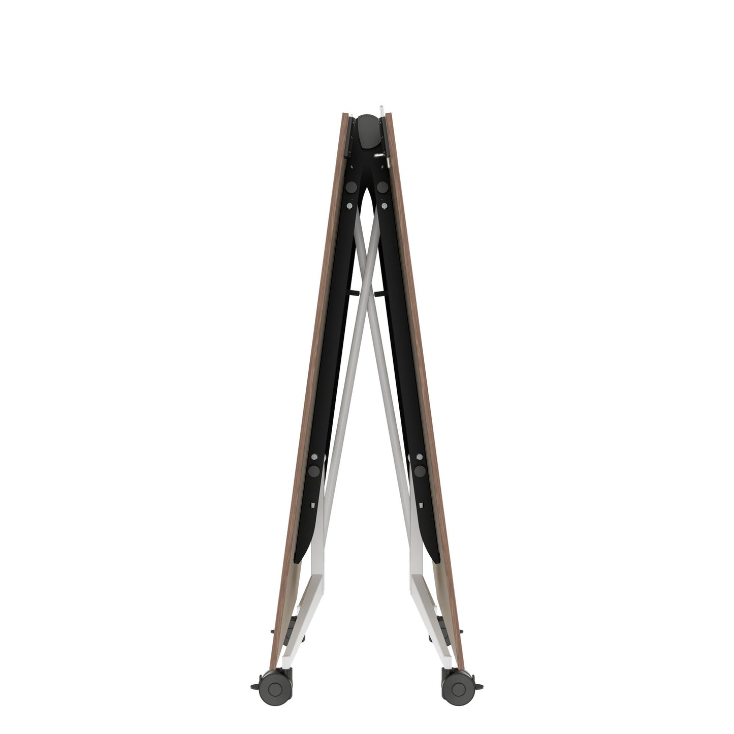 Was ist, wenn der Konferenztisch mal einen Raumwechsel vornehmen muss? Kein Problem! Der LIBRO ist so flexibel wie ein Zirkusakrobat. Dank seines schlanken Klappmaßes von nur 50 cm passt er nicht nur durch jede Tür, sondern turnt auch elegant in den Aufzug hinein. Dabei macht das mechanische Verriegelungssystem den Tisch für eine Person leicht manövrierfähig. Und wenn er gerade nicht die Bühne Ihres Büros schmückt, versteckt er sich diskret und raumsparend an der Wand.