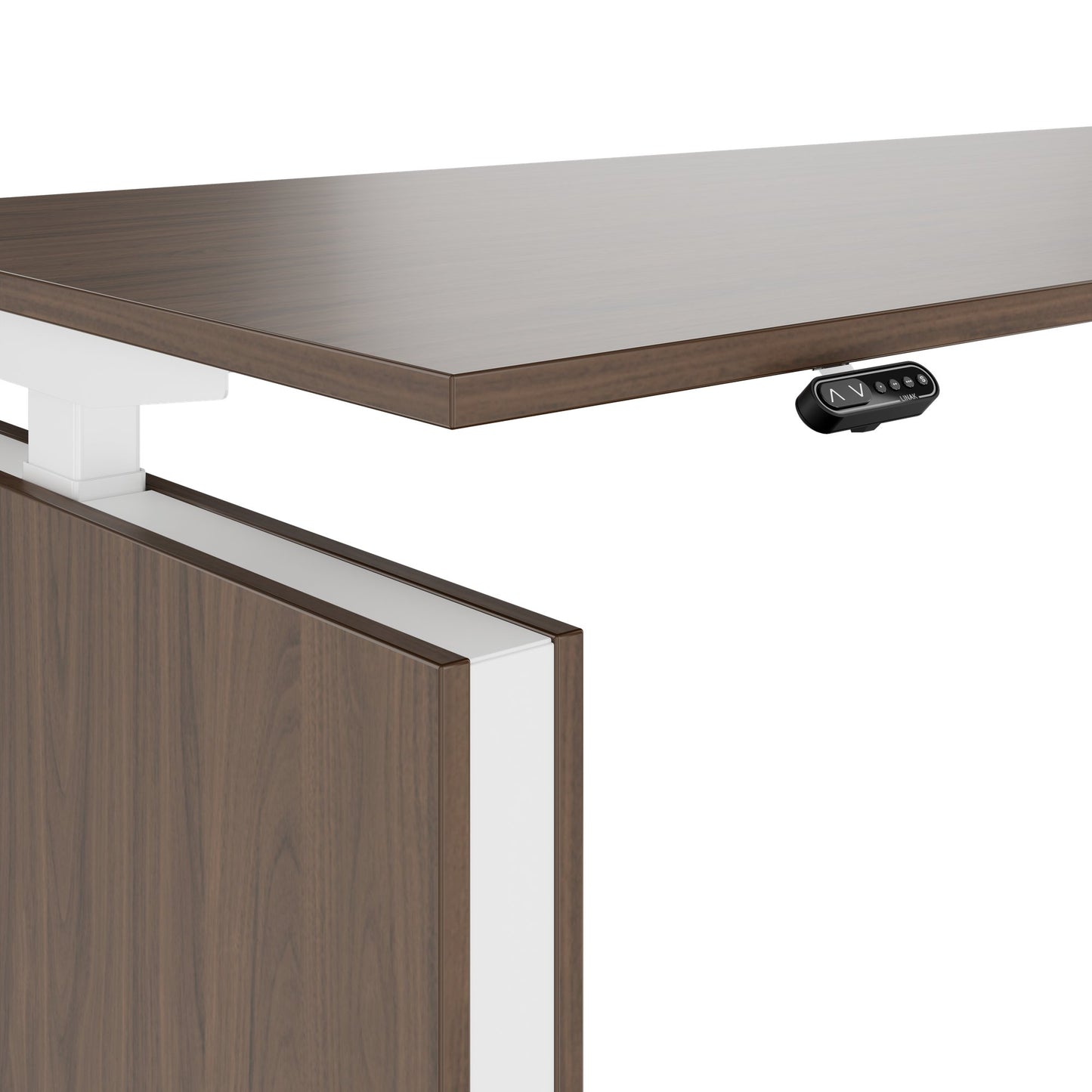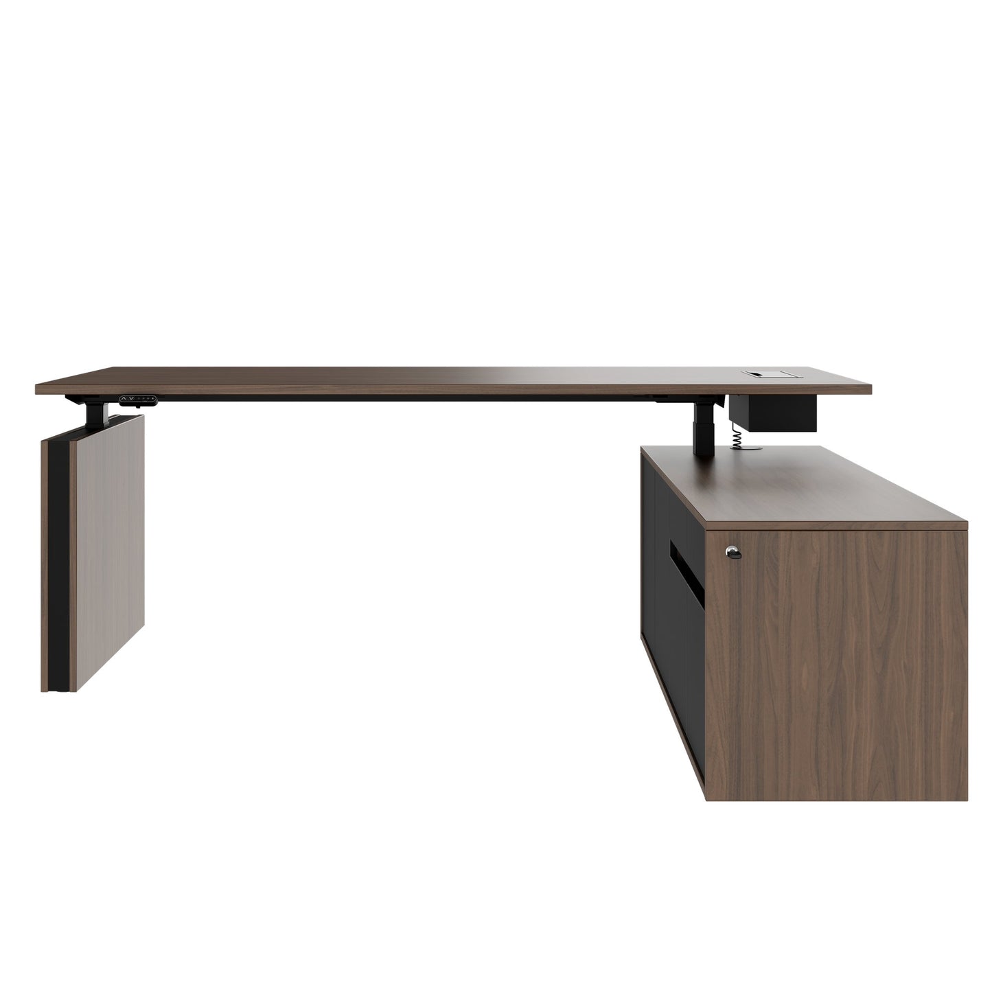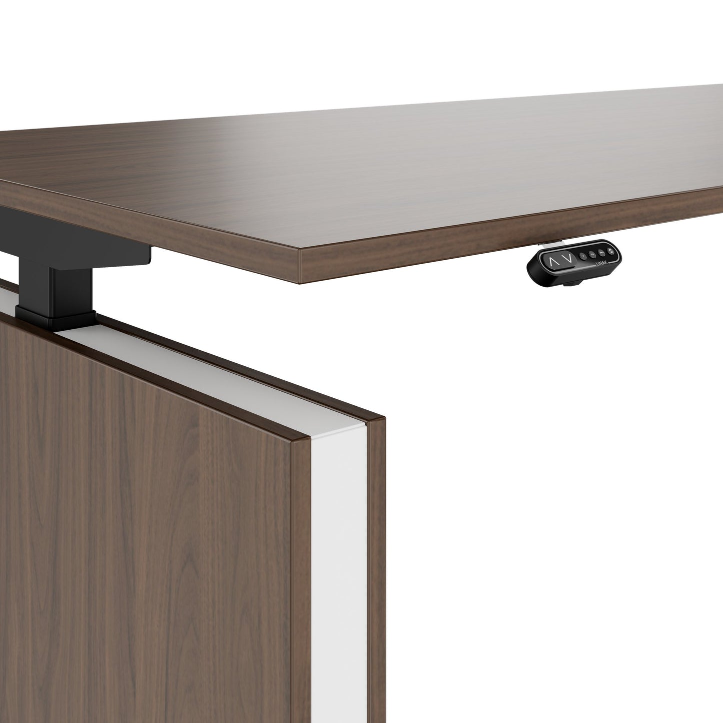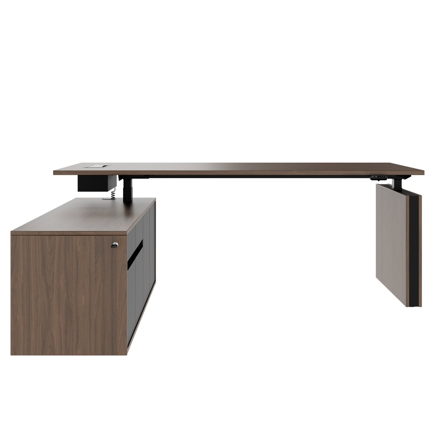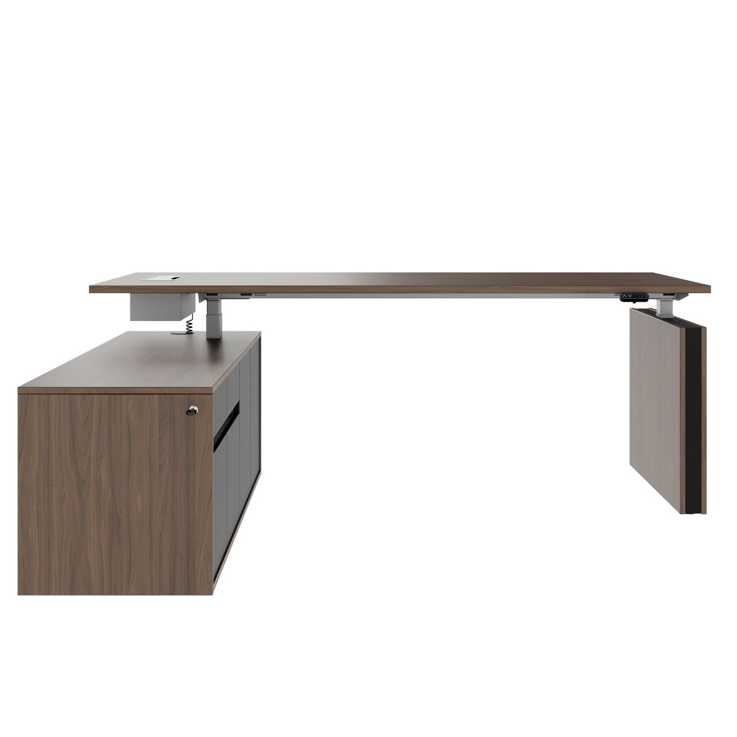 Entdecke den höhenverstellbaren Chefschreibtisch der Extraklasse, der mit einer beeindruckenden 10 Jahres-Garantie überzeugt. Das integrierte Sideboard mit abschliessbarer Schublade bietet dir Sicherheit und Ordnung. Dank der 2 LINAK-Motoren erlebst du einen sanften Soft Start-Stopp Mechanismus sowie einen zuverlässigen Anti-Kollisionssensor. Speichere deine bevorzugten Positionen mithilfe der Memory-Funktion mit 3 Speicherplätzen ab. Zusätzlich punktet der Schreibtisch mit einer in die Tischplatte integrierten Vierfach-Steckdosenleiste – für maximale Flexibilität und Produktivität!